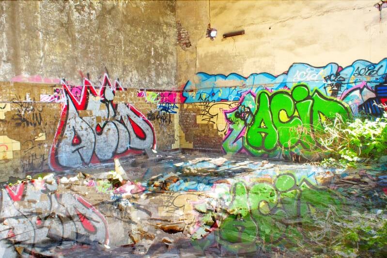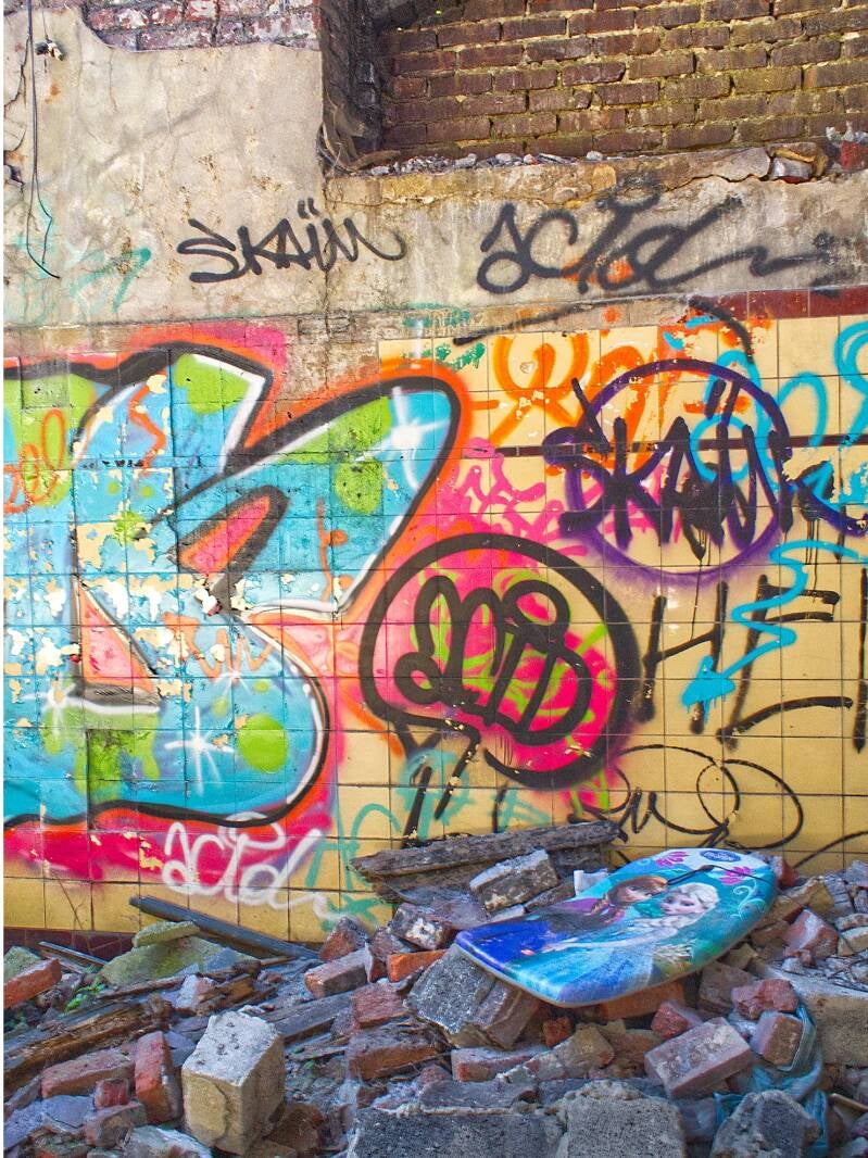 Bâtiments abandonnés, en ruine, squattés par des marginaux qui refont la déco à leur manière. Lieux empreints d'un passé industriel, familial, commercial dont il ne reste que de pauvres vestiges dégradés qui peuvent donner un aperçu de ce qu'était la vie ici avant et dont l'avenir, pour la plupart, se résume à la démolition. Lieux fragiles, très dangereux et bien souvent interdits d'accès. Dans cette série je donne la priorité à la couleur car sans elle, cela serait comme des frites sans sel ou une paella sans safran.
